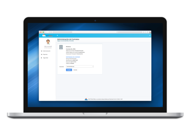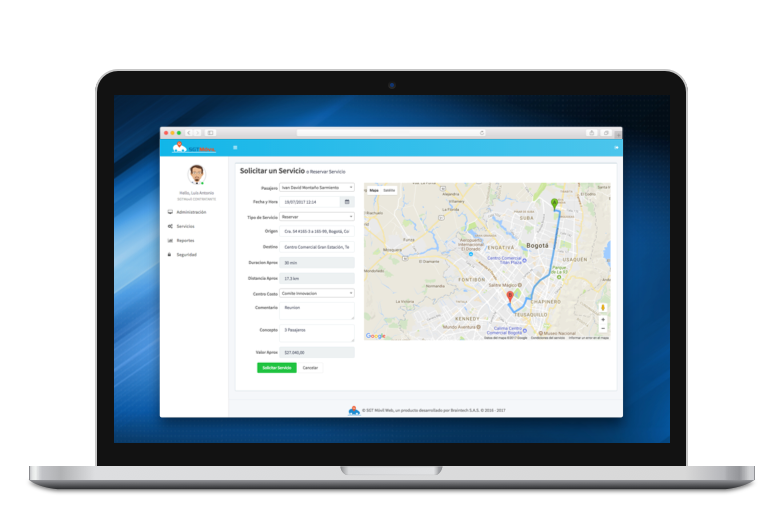 Es un paquete de aplicaciones desarrollada para que las empresas de transporte especial puedan ofrecer a sus clientes una gama de herramientas tecnológicas al momento de solicitar sus servicios de transporte teniendo siempre presente la legislación del país. Este paquete lo componen un portal Web para que el personal que está en un computador pueda solicitar sus servicios mediante una plataforma web.